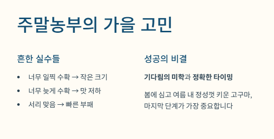 정성껏 키운 고구마, '언제' 캐느냐가 맛의 80%를 결정합니다!