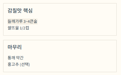 | 감칠맛 핵심 | 들깨가루 3~4큰술, 쌀뜨물(또는 물) 1/2컵 |