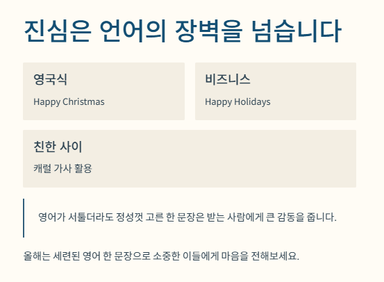"혹시 외국인 친구에게 메시지를 보낼 때, 혹은 영어 카드를 작성할 때 'Merry Christmas' 뒤에 커서만 깜빡이고 있지는 않으신가요? 상황에 맞는 '한 문장'이 당신의 센스를 결정합니다."