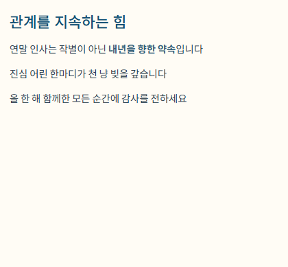 연말 인사말은 단순히 한 해를 끝내는 작별 인사가 아닙니다. 내년에도 이 관계를 소중히 이어가고 싶다는 **'약속'**입니다.