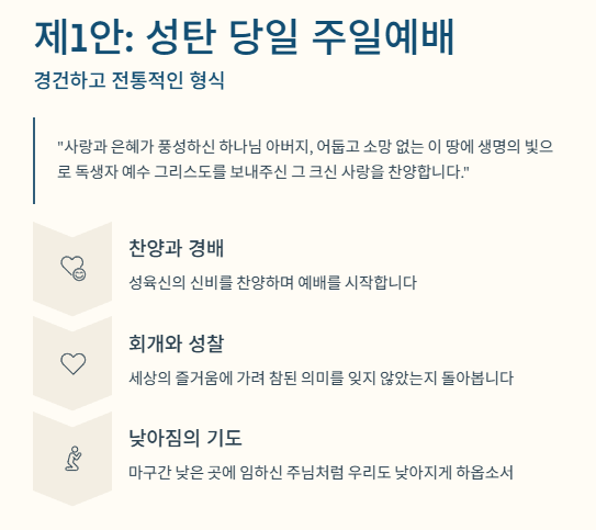 제1안: 성탄 당일 주일예배 (경건하고 전통적인 형식)