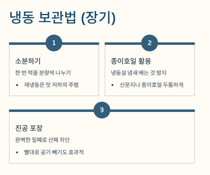 ② 장기 보관 (3일 이상 보관 시): 냉동 보관