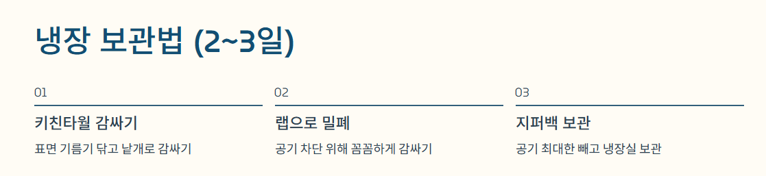 ① 단기 보관 (2~3일 내 섭취 시): 냉장 보관