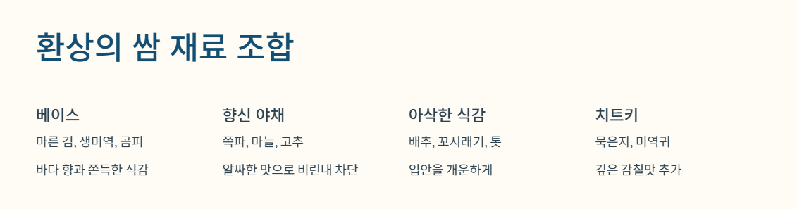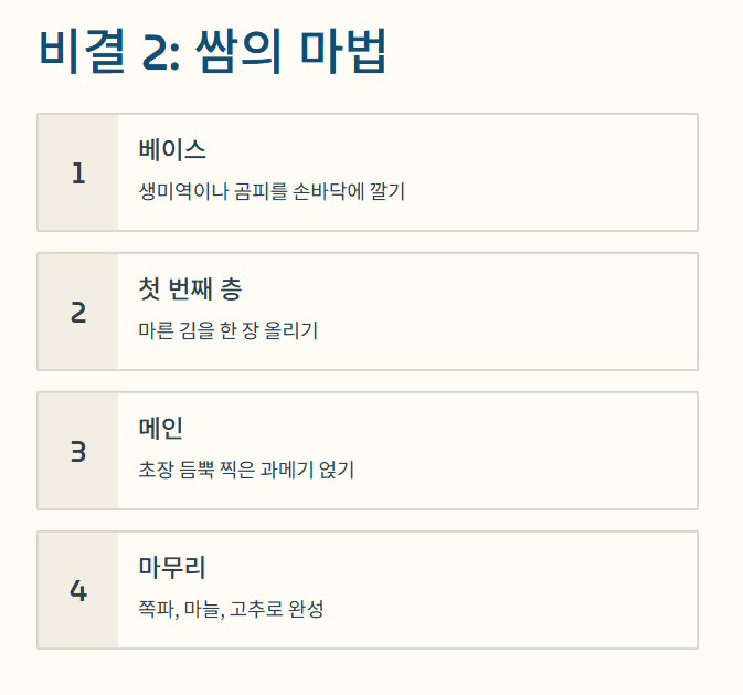 2. 두 번째 비결: 입안에서 펼쳐지는 조화, '쌈의 미학'