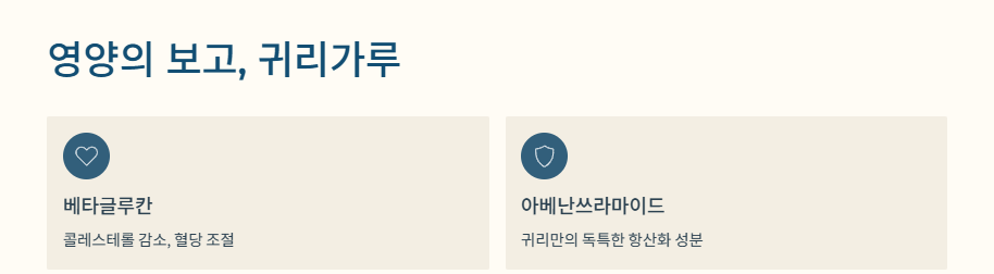 - 아베난쓰라마이드: 귀리에만 있는 독자적인 항산화 성분으로 혈관 염증을 완화합니다.