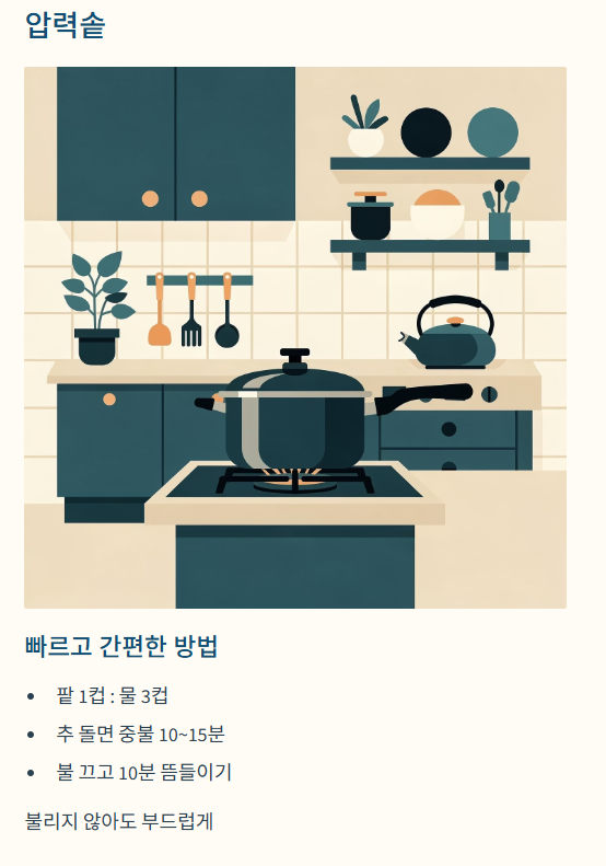 ✅ 방법 B: 압력솥으로 삶기 (빠르고 간편함)