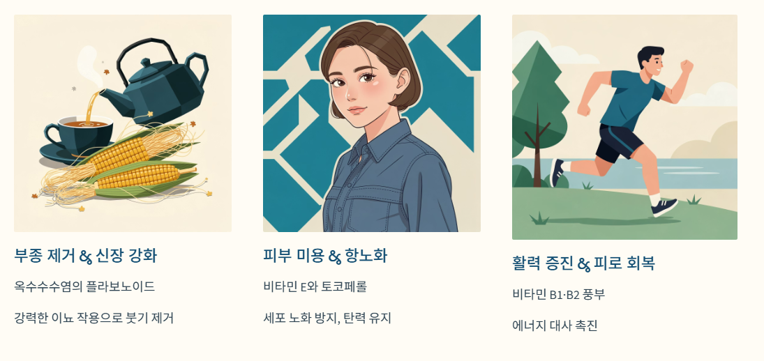 ⑤ 부종 제거 및 신장 기능 강화 (옥수수수염)