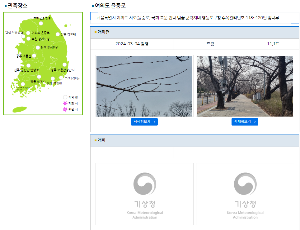 현재 꽃이 개화했는지 안 했는지 현장사진으로 제공하고 있으니 기상청 홈페이지에서 꼭 미리 확인해 보세요.