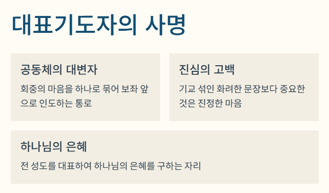 대표기도는 단순히 글을 읽는 것이 아니라 마음을 전달하는 과정입니다.