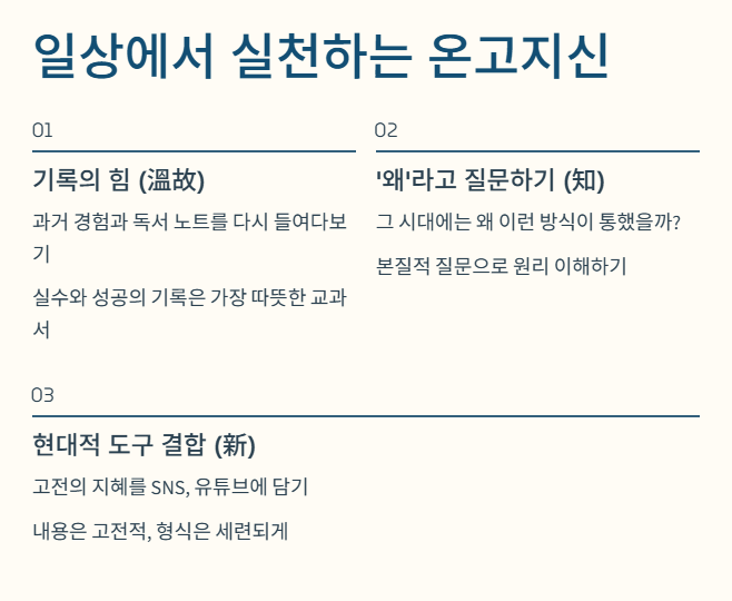일상생활에서 온고지신의 지혜를 실천하려면 어떻게 해야 할까요?