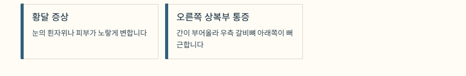 - 황달 증상: 눈의 흰자위나 피부가 노랗게 변합니다.