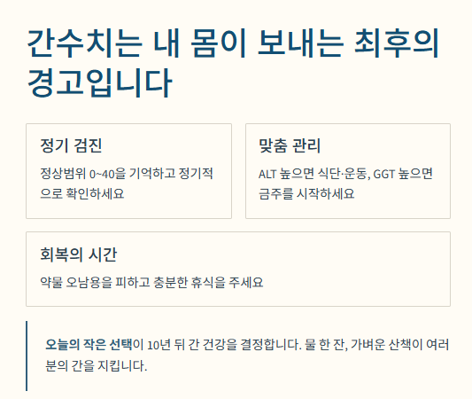 간은 회복력이 뛰어난 장기입니다. 올바른 습관만으로도 수치를 정상화할 수 있습니다.