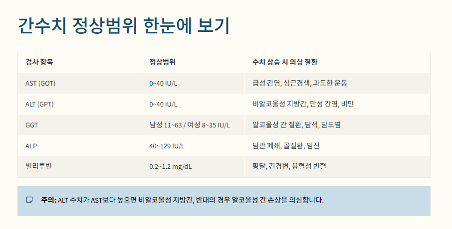 💡 주의: AST보다 ALT 수치가 더 높을 경우 주로 비만이나 당뇨와 연관된 '비알코올성 지방간'을 의심하며, 반대로 AST가 훨씬 높다면 알코올성 간 손상이나 근육 손상을 먼저 의심하게 됩니다.