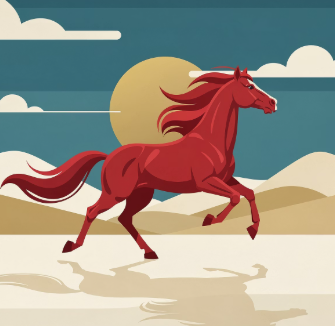 - 붉은 말은 멈추지 않는 열정과 추진력을 상징합니다.