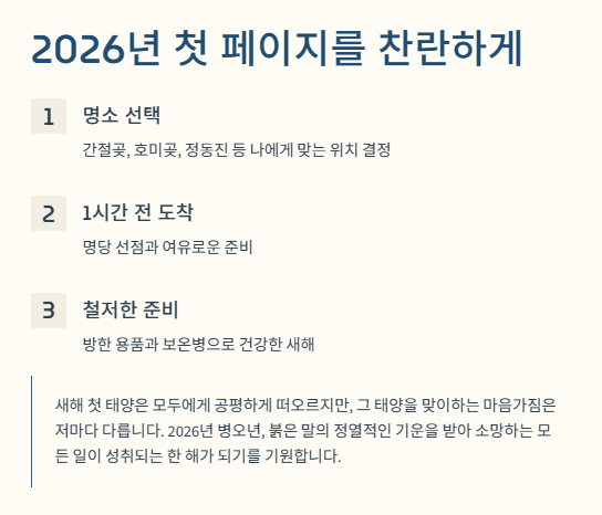 지금까지 2026년 해돋이 명소와 일출 정보에 대해 상세히 알아보았습니다.