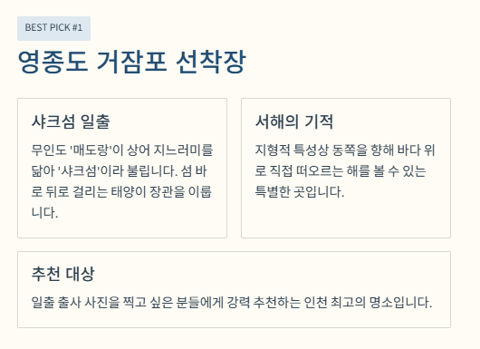 2. 인천 권역별 최고의 해돋이 명소 BEST 5 상세 가이드