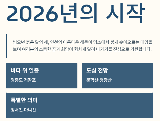 [2026년 1월 1일 인천 주요 포인트 예상 일출 시각]