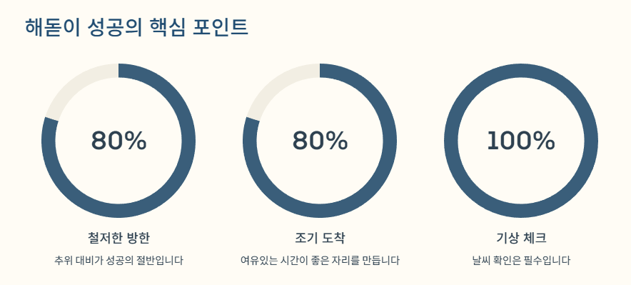 - 해돋이는 철저한 방한과 조기 도착이 성공의 80%를 결정합니다.
