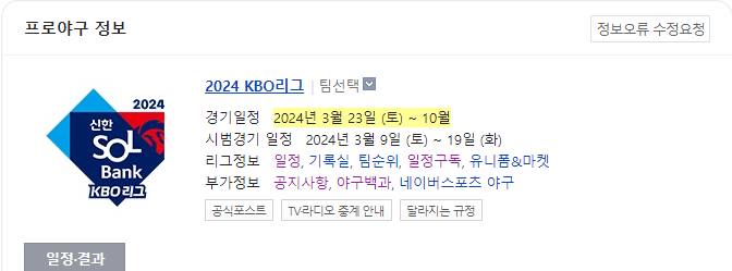 1. 2024 KBO프로야구 개막일정
